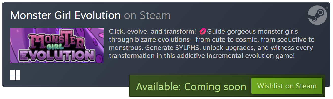As a spin-off game of our game Anomaly Evolution, Monster Girl Evolution is a clicker incremental game in which you focus the evolution of different monster girls. Strategize on the evolutionary growth of beautifully designed monster girls and observe their unique transformations. Watch if they will transform into some hideous monstrosity, or a busty horny looking sex goddess!